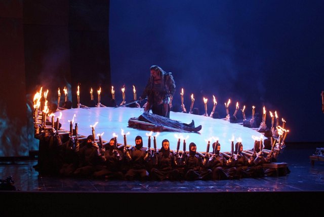 Cuando Siegfried llega al bosque y oye sus murmullos, vemos unos árboles humanizados, con alma. Quizá la metáfora más conseguida de toda esta producción sea la del propio anillo, cuyo oro está compuesto de hombres dorados desparramados por el suelo. El anillo que procede de la naturaleza, que está en ella, pero que si se utiliza de forma espuria, lleva a la perdición y al ocaso. Eugenio Trías lo ve así: “El poder de dominación está maldito. Si se posee, genera sufrimiento, caducidad, decadencia y muerte. Y si no se posee, arruina la felicidad a través de la más corrosiva de las pasiones tristes: la envidia”. Precisamente el motor de las pasiones de los personajes de las tragedias de Shakespeare, a decir de René Girard. El final de toda esta espiral en estas obras es la muerte: una muerte sin redención posible. Frente a ese poder maldito emergerá, purificado, el poder del amor y la belleza.