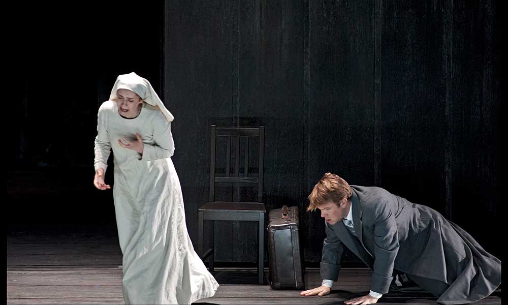 Hace ya algunos años que Olivier Py trabaja textos que remiten a la vida interior y a la espiritualidad. Al Teatro de la Abadía de Madrid llegó en 2014 para estrenar Hacia la alegría, un monólogo sobre la vida y el arte que encarnaba Pedro Casablanc y que luego visitaría el Teatro Nacional de Bruselas. Un año antes había estrenado Diálogos de carmelitas en París, versión que ha subido estos días al escenario de La Monnaie.