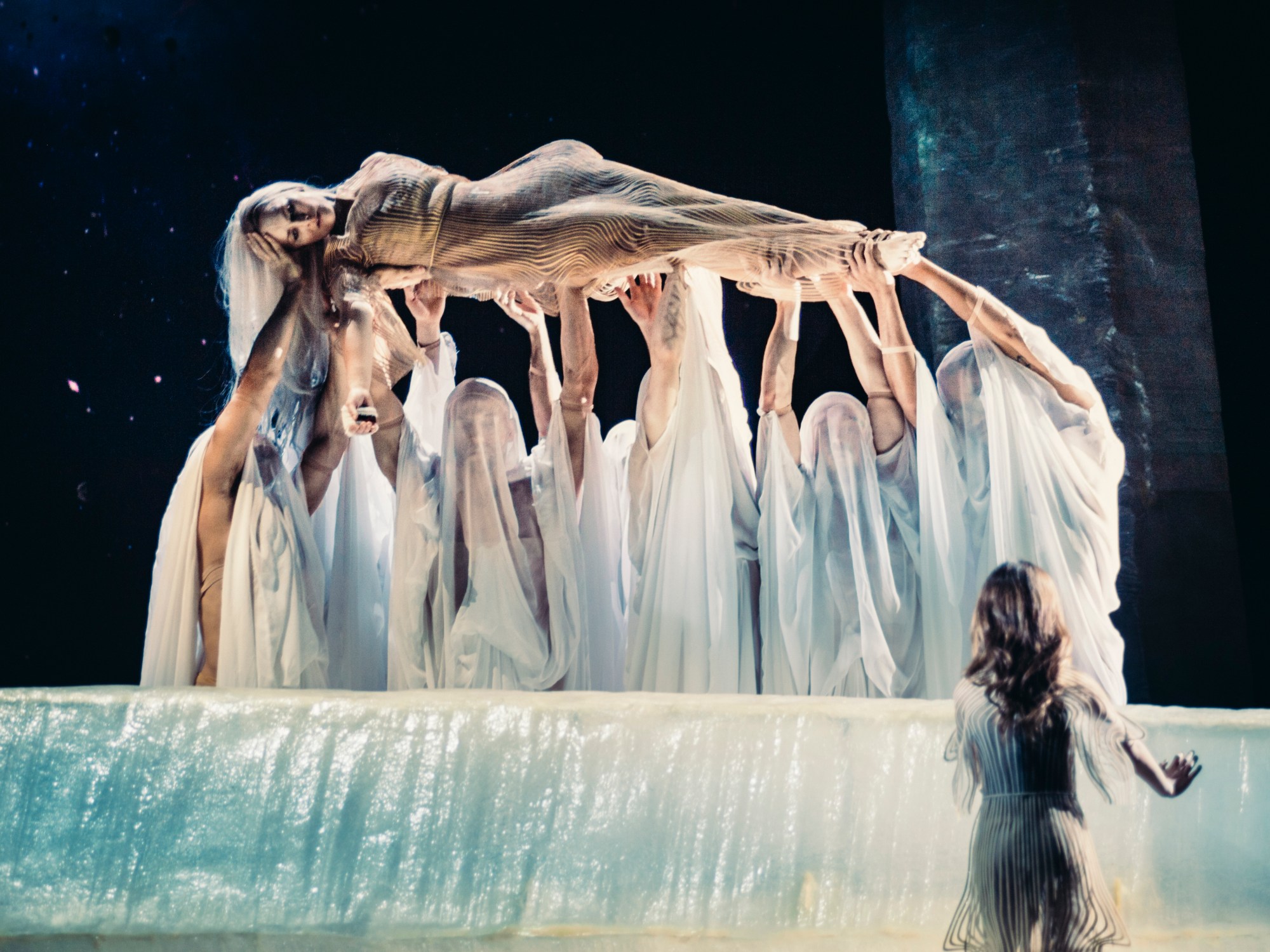 Los bailarines de las coreografías de Sidi Larbi Cherkaoui y Damien Jalet impulsan la acción caracterizados como las parcas que tejen los hilos del destino o los soldados que custodian el castillo, aunque a veces resultan un tanto distantes, sin involucrar del todo en sus movimientos a los cantantes, como ocurre en otros coreógrafos como Pina Bausch, Sasha Waltz o Anna Teresa de Keersmaeker. Los mejores momentos fueron aquellos que discurrieron con una mayor compenetración, sin dos discursos sobre el escenario, como la escena de las trenzas, o la muerte de Pélleas y la final de Mélisande. Las voces consiguieron sobresalir en esta producción metálica y oscura, alejada de cualquier similitud con el ambiente mágico de un cuento romántico. La noruega Mari Eriksmoen posee una voz pequeña pero de exquisito timbre, que se adapta a Mélisande tan bien como el fascinante vestido que le hizo la figurinista, Iris van Herpen. Jacques Imbrailo es un Pélleas sólido, que tuvo su mejor espejo en el gran Golaud de Leigh Melrose. Destacó también el muy teatral Arkel de Matthew Best. Alejo Pérez dirigió con brío, profundidad y muchos detalles esta excepcional y exigente partitura de Debussy.